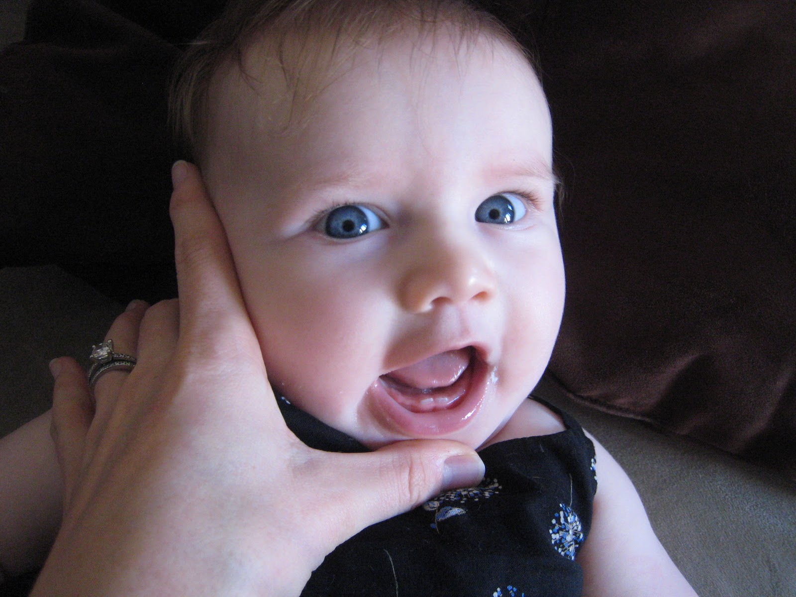 - She makes all kinds of sounds, loves blowing bubbles, and lets you know when she needs a change of scenery!